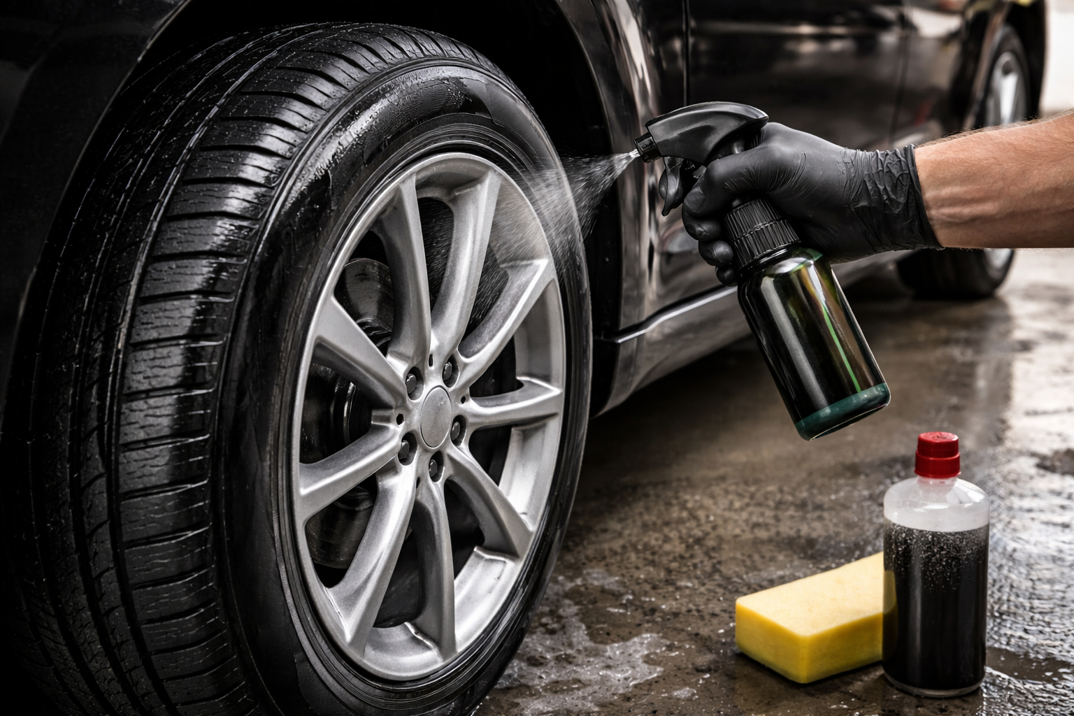 You wash the car, apply tire dressing, and the tire looks amazing—deep black, vibrant, with that showroom shine. But the next day, it feels like it evaporated. Or worse: the tire gets blotchy, runs, smears onto the wheel, and attracts dust like a magnet. If you’ve been through this, if the tire “shines” and the next day it’s gone, something’s wrong. And the problem is almost never “the tire won’t hold product.” Most of the time, the issue is rubber preparation, product choice, and—above all—the way it’s applied.
